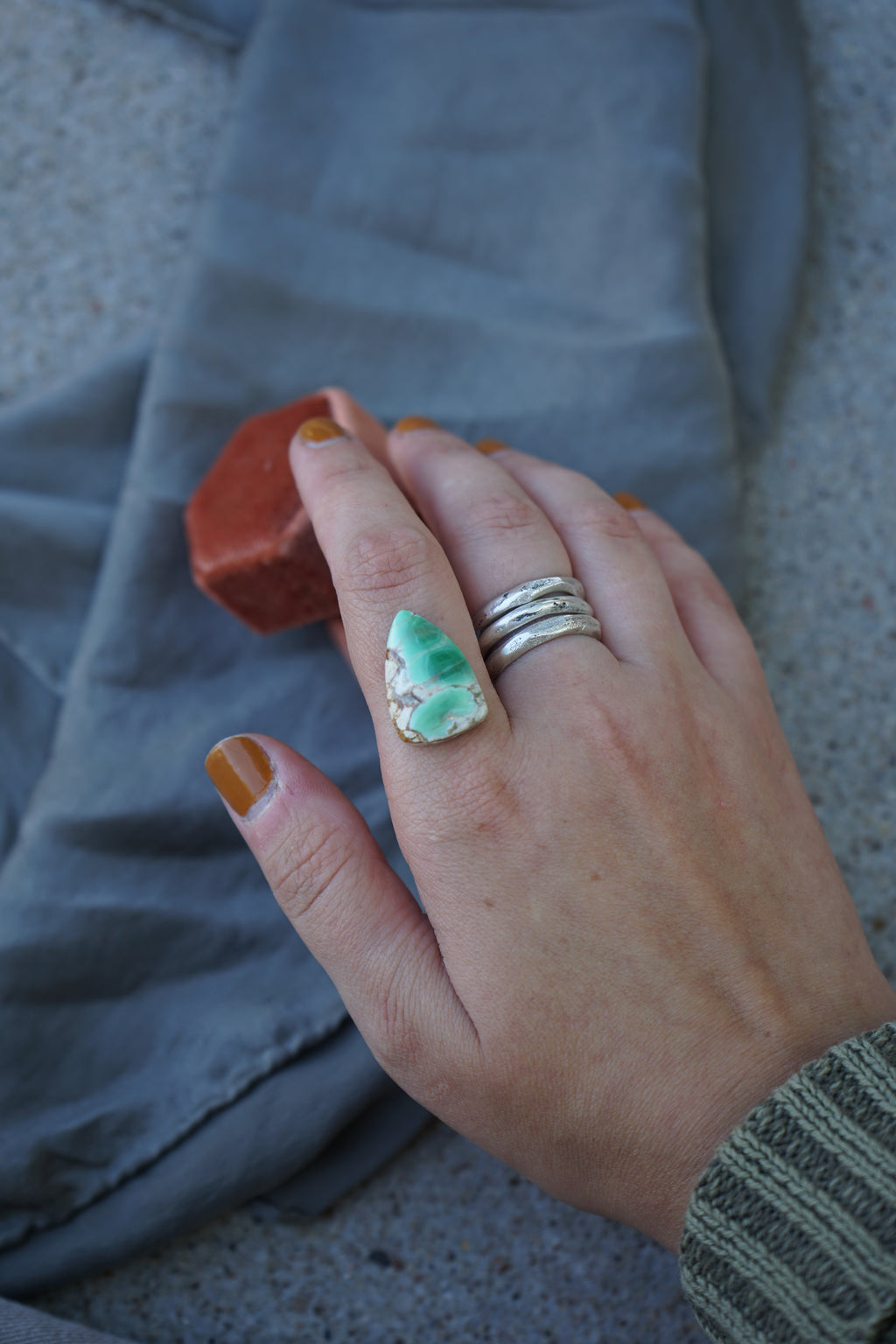 Mama by day, silversmith by night. I started this journey because I wanted to make something that inspired me to feel beautiful even in the chaos of new motherhood. My goal is to continue looking to the world around me to find sparks of creativity in the places that keep me feeling the most grounded. I hope these pieces can inspire you to feel a piece of the vast amount of beauty within you. Each piece lovingly handmade in my garage studio just outside of Austin, Texas.